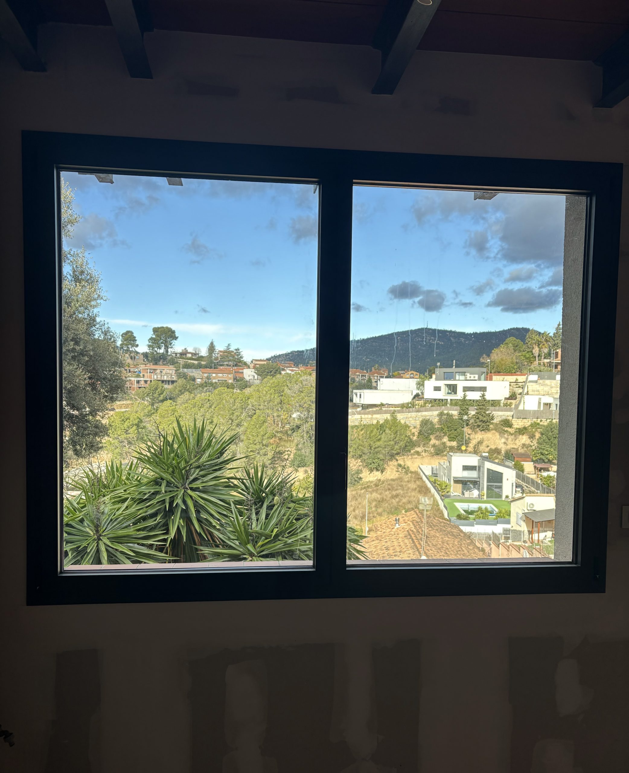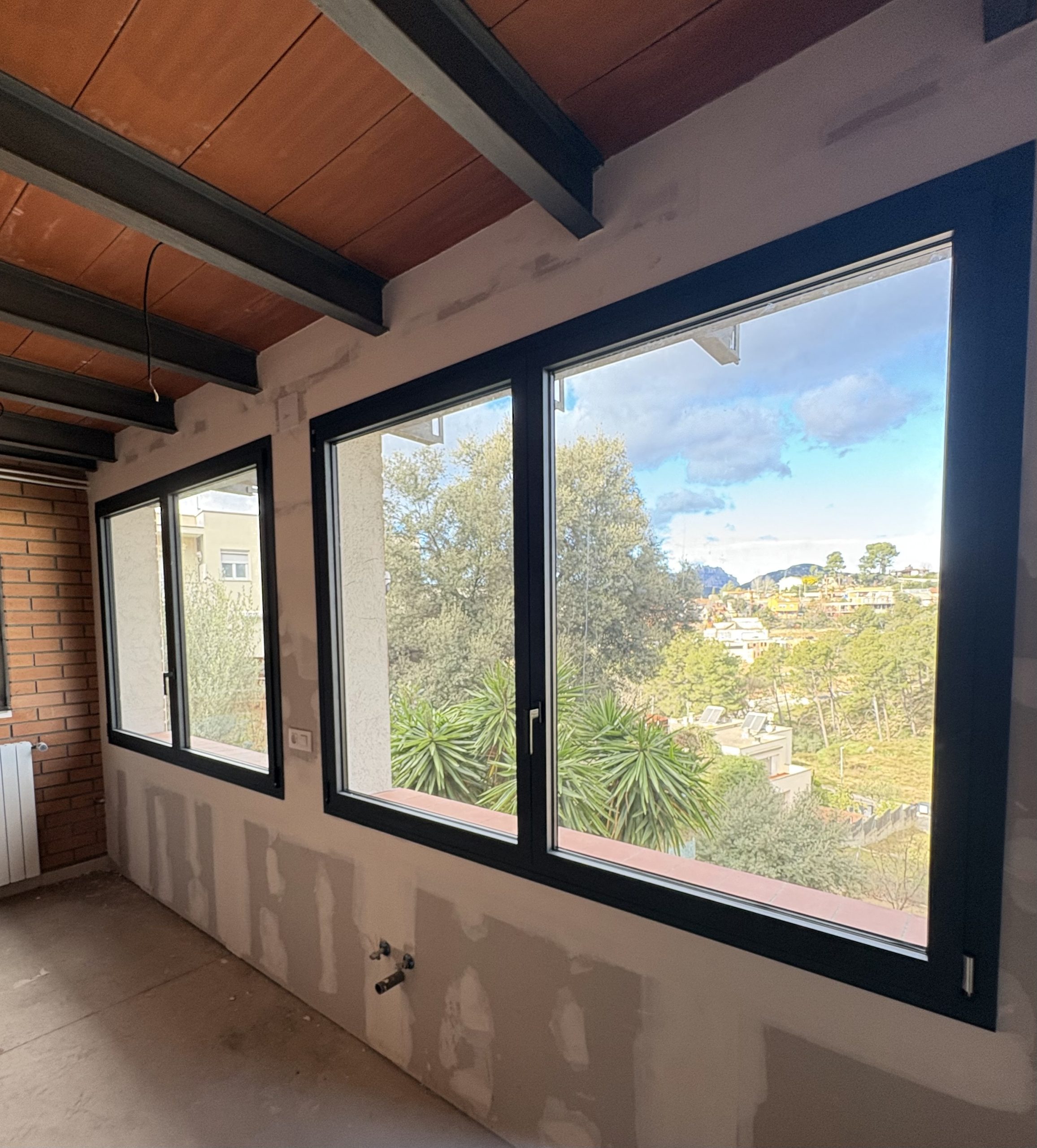 Esta es una vivienda unifamiliar situada en Viladecavalls, las ventanas para que sean lo más eficientes posibles son de aluminio con rotura de puente térmico de la serie Eficient RPT de Centroalum y la Hoja Oculta de 65 mm de Extrual.