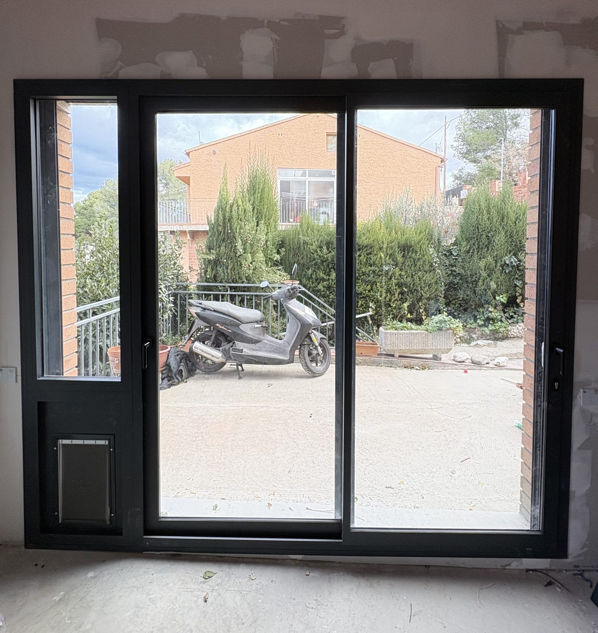 La corredera principal dispone de un acceso para mascotas en el lateral. También lleva incorporada una cerradura para poder utilizarla como acceso directo a la vivienda, sin tener que entrar por la puerta principal de la casa que está en la planta superior.